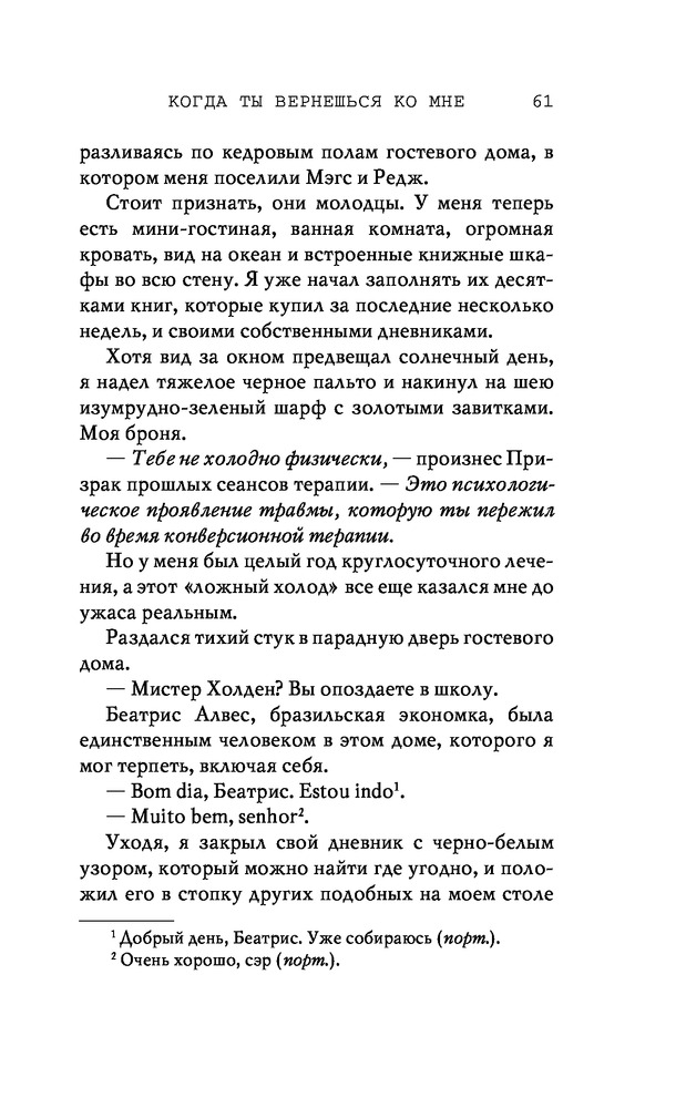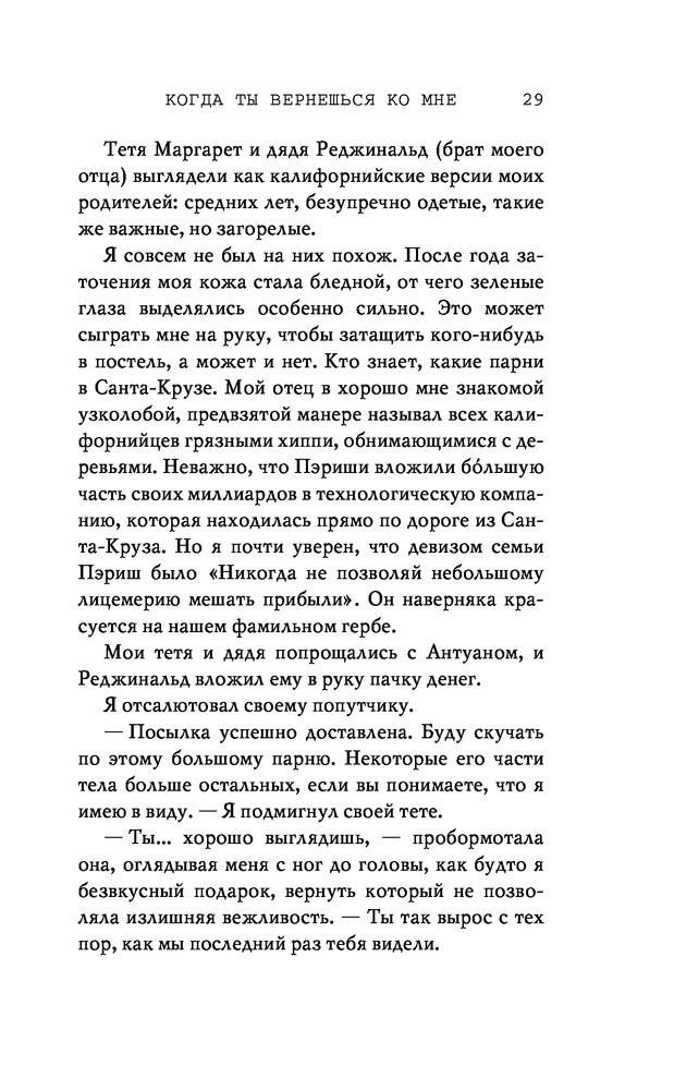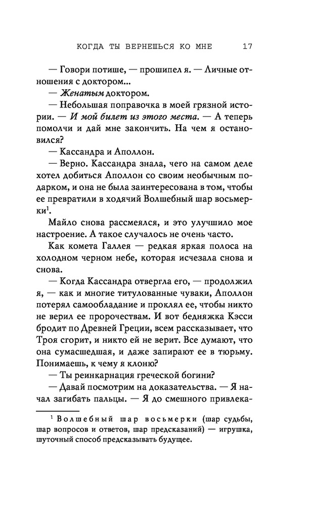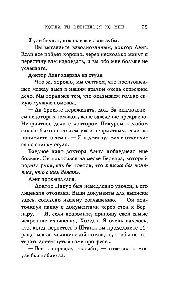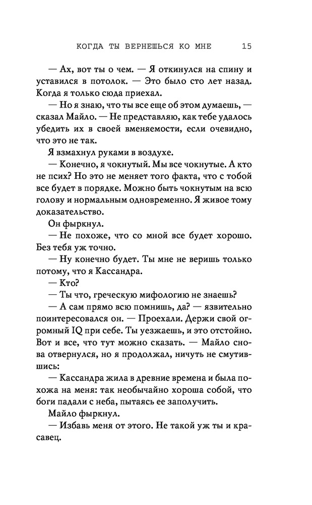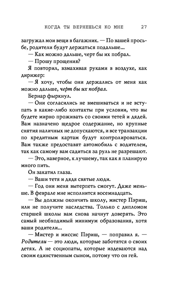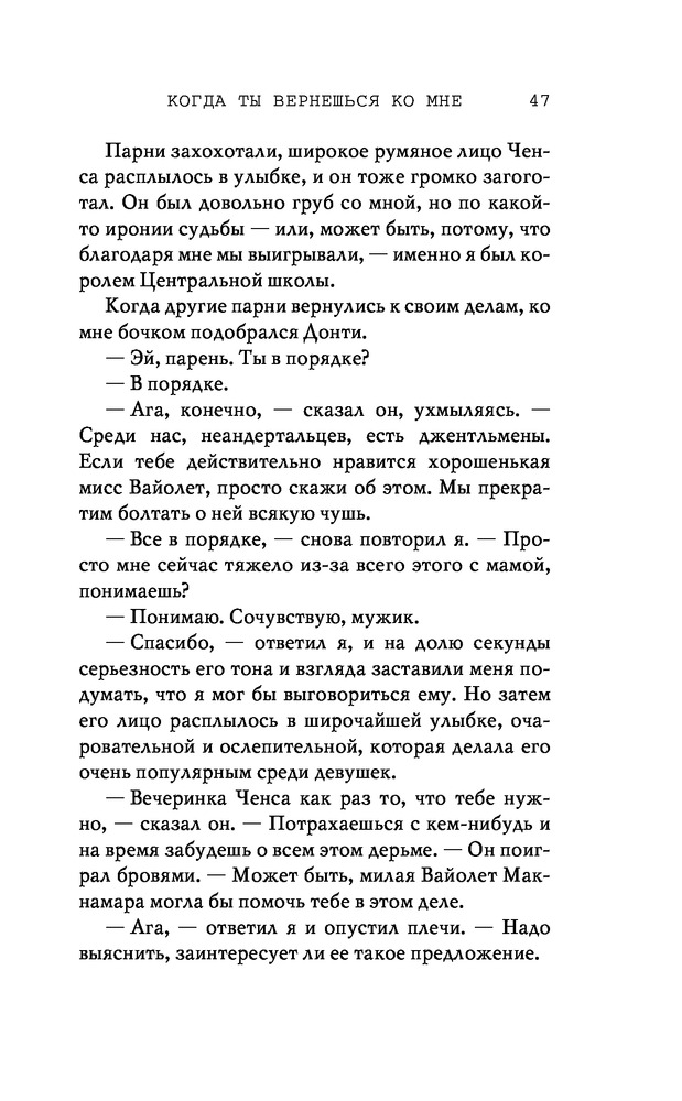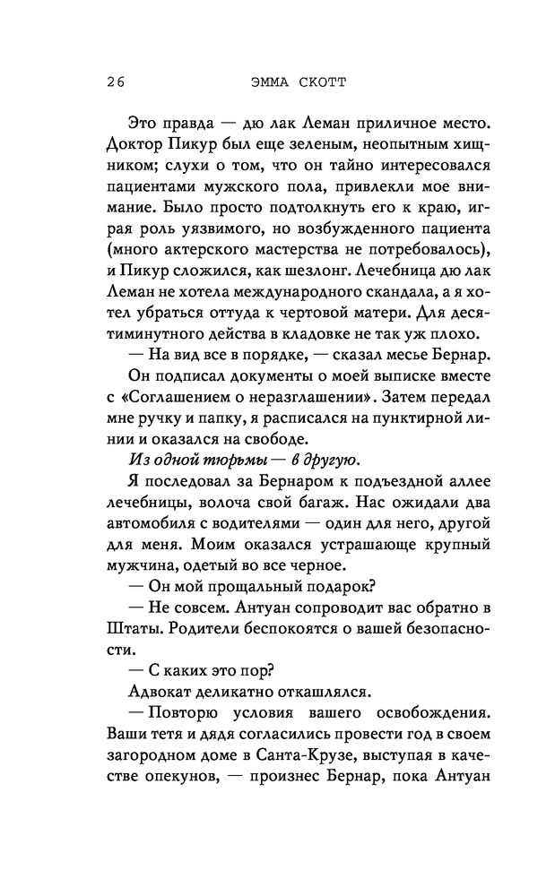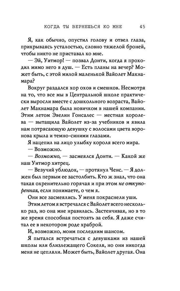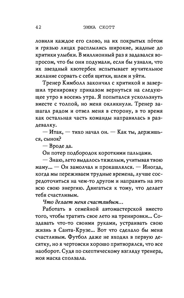 Потерянные души. Когда ты вернешься ко мнеВ данный момент этот товар отсутствует в продаже. Возможно, у нас найдется аналогичный или похожий товар здесь. Серия: Freedom. Романтическая проза Эммы Скотт Родители хотели сделать из меня «идеального сына». Они поняли свою ошибку, когда я вернулся из лагеря терапии в истерике, весь избитый. Потом была кушетка лечебницы для душевнобольных. Из-за холода, что впился в меня ледяными клешнями. Да, я все так же крут, но теперь уже сломлен. Больше никого не подпущу к себе и на метр. Мне осталось продержаться год в Санта-Крузе, после чего я заберу наследство и начну все сначала. Я не планировал влюбляться. Но судьба смеется над нашими планами, не так ли? |