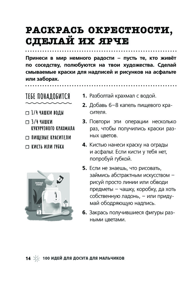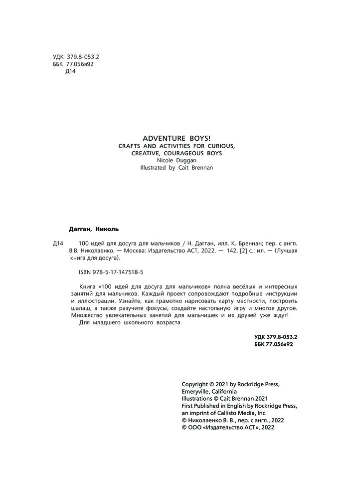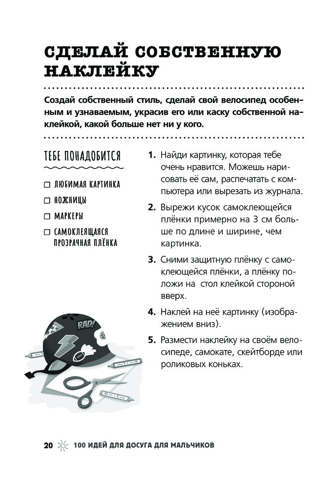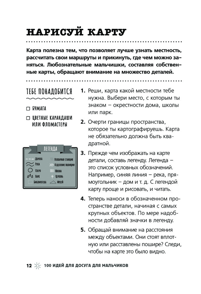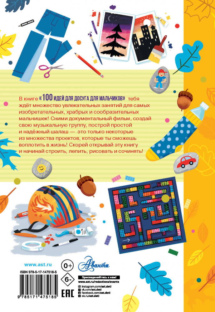 Аванта 100 идей для досуга для мальчиковВ данный момент этот товар отсутствует в продаже. Возможно, у нас найдется аналогичный или похожий товар здесь. Серия: Лучшая книга для досуга Книга «100 идей для досуга для мальчиков» полна весёлых и интересных занятий для мальчиков. Каждый проект сопровождают подробные инструкции и иллюстрации. Узнайте, как грамотно нарисовать карту местности, построить шалаш, а также разучите фокусы, создайте настольную игру и многое другое. Множество увлекательных занятий для мальчишек и их друзей уже ждут! |