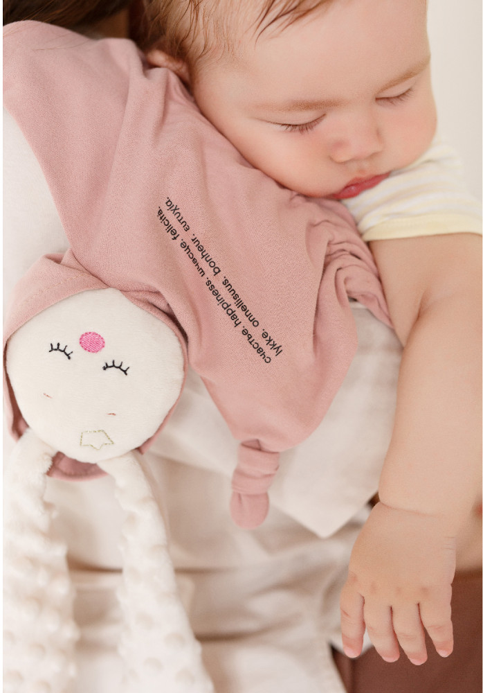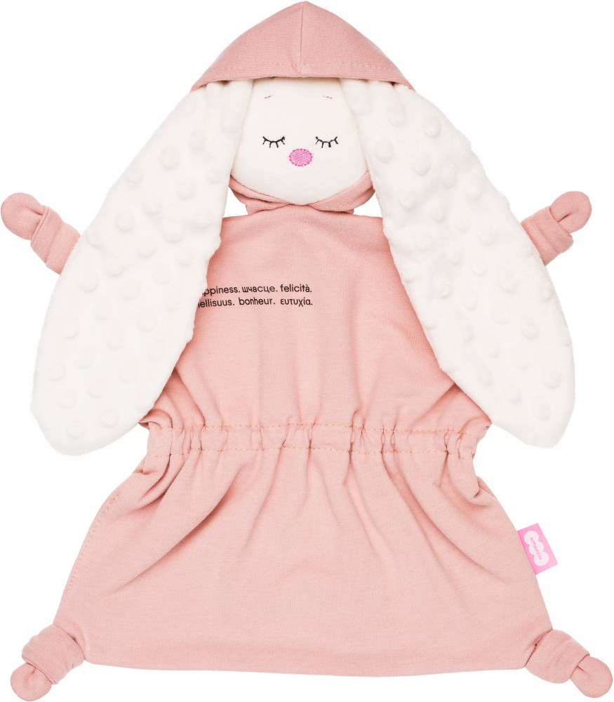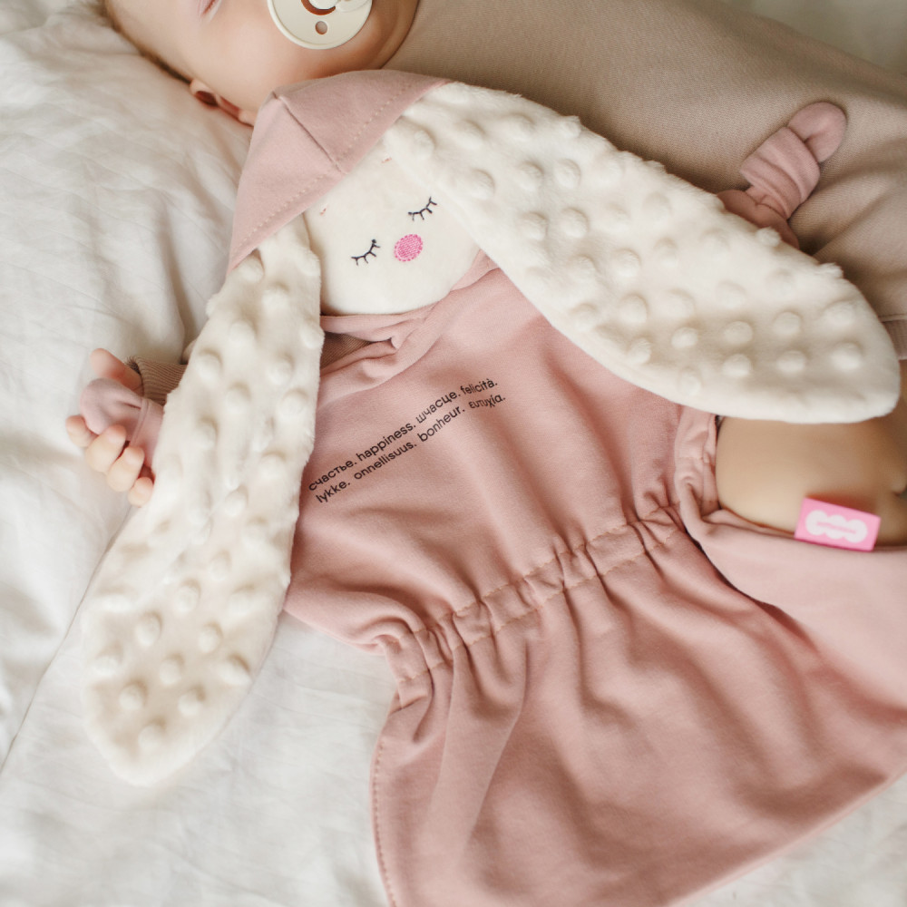 Зайчик комфортер выполнен из гипоаллергенного плюша и синтепуха, поэтому является полностью безопасным для самых маленьких. Стильный дизайн комфортера в модных пастельный тонах отлично подходит для современных, спортивных мам. Слово «счастье» на разных языках мира — это наше послание светлой, позитивной энергии вашему малышу.