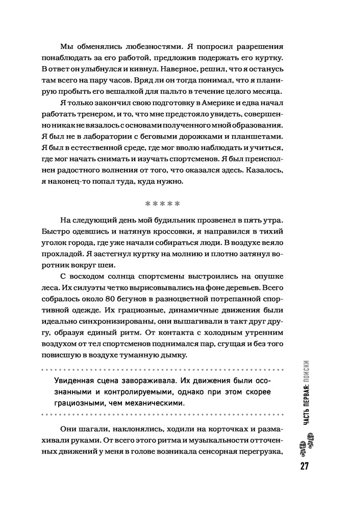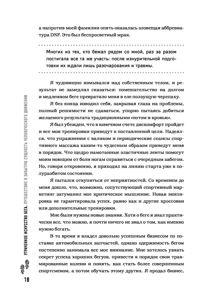 Утраченное искусство бега. Путешествие в забытую сущность человеческого движенияВ данный момент этот товар отсутствует в продаже. Возможно, у нас найдется аналогичный или похожий товар здесь. Серия: Испытай тело. Движение в правильном направлении Книга издана при участии Степана Киселева — двукратного Чемпиона России по марафону, победителя Московского марафона, и Максима Якушева — многократного чемпиона страны на 3000 метров с препятствиями. Эта книга — живое исследование бега во всех его проявлениях: корней, истории, механики, духа. Вы узнаете о головокружительном чувстве свободы, о скрытых в каждом способностях и о том, что бег тоже может быть настоящим искусством. |