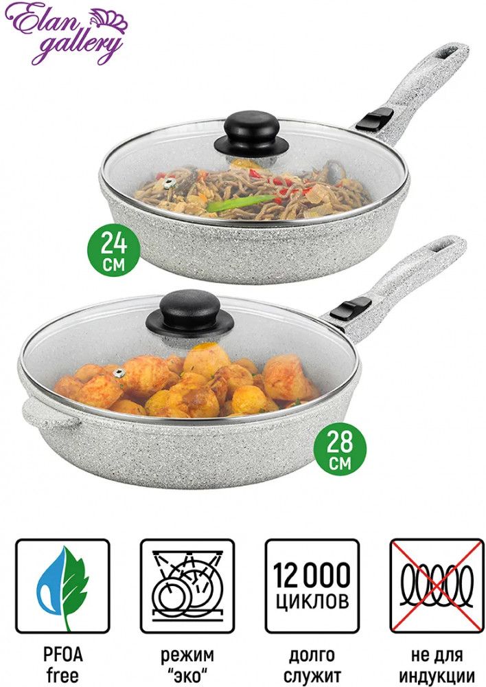Elan Gallery Набор сковород с крышками и съемными ручками «Серый агат»