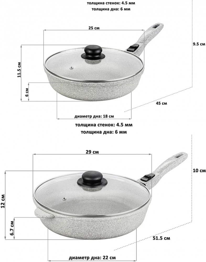 Отзывы «Набор сковород с крышками и съемными ручками «Серый агат»»