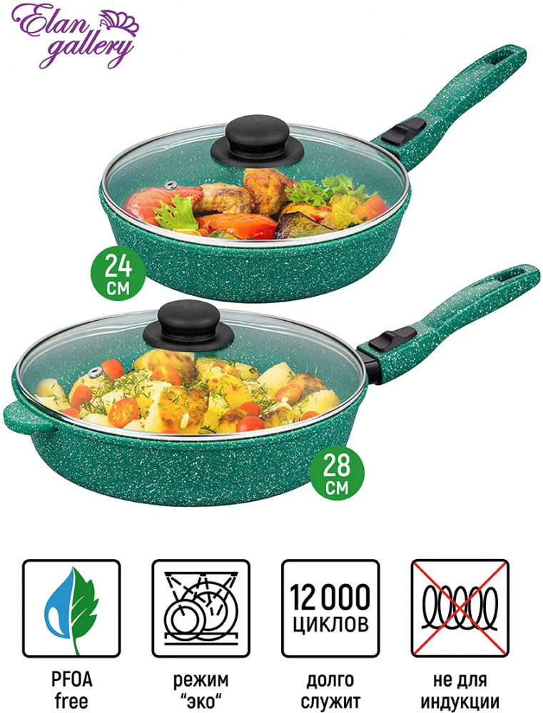 Elan Gallery Набор сковород с крышками и съемными ручками «Изумруд»
