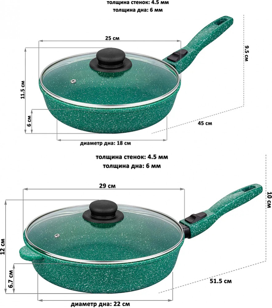 Отзывы «Набор сковород с крышками и съемными ручками «Изумруд»»