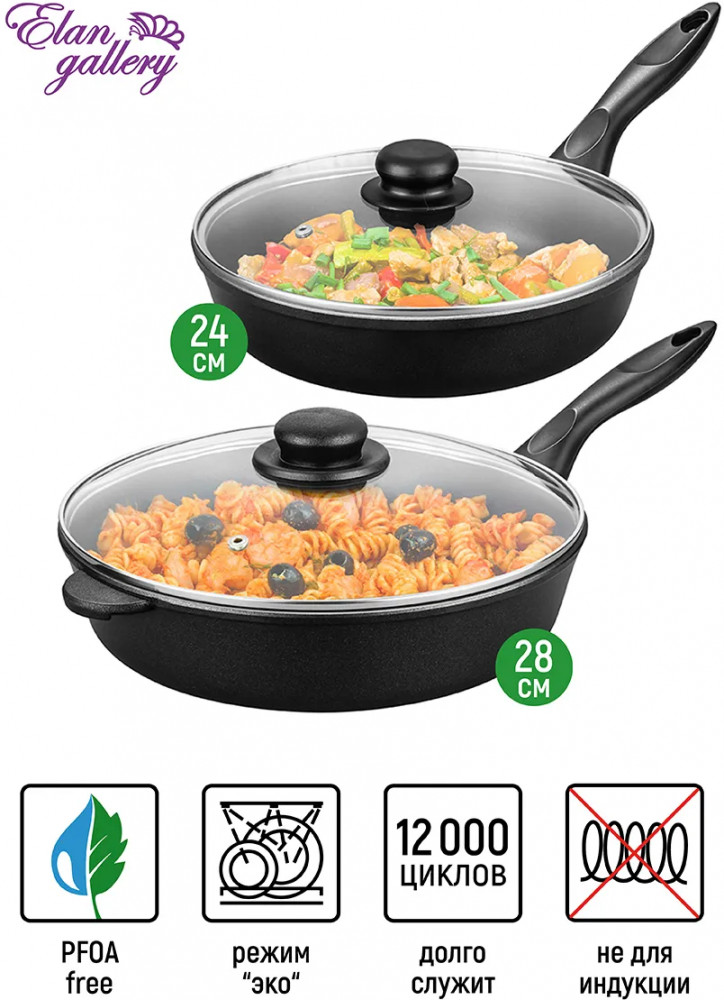 Elan Gallery Набор сковород с крышками «Чёрный оникс»