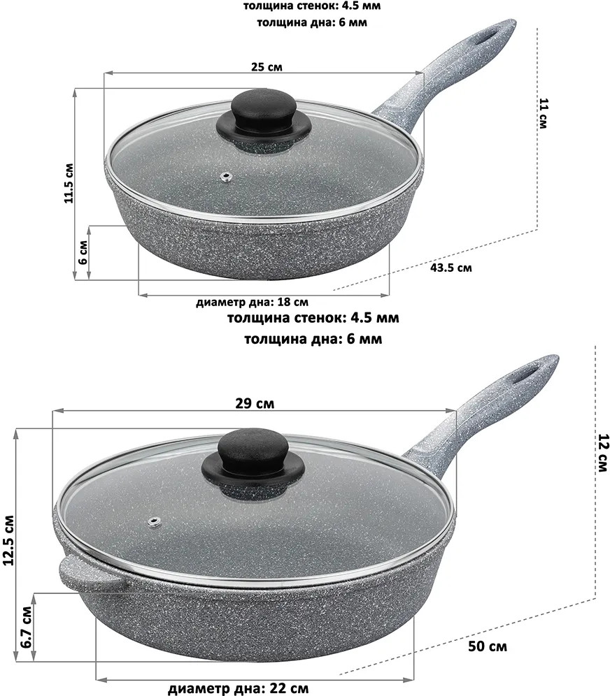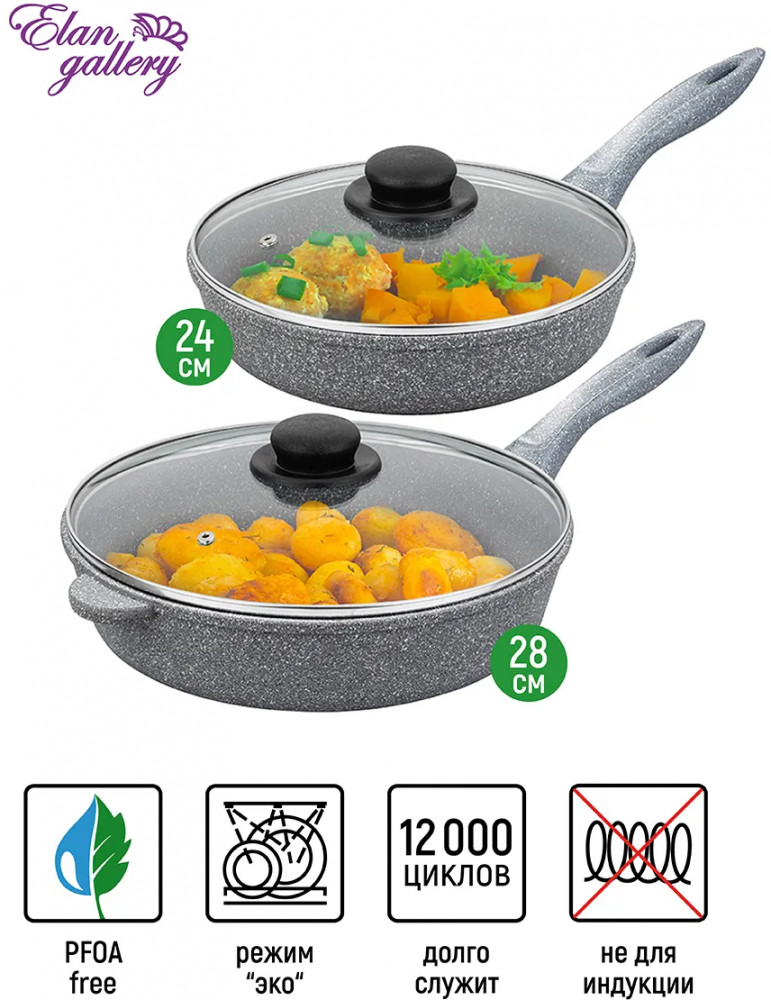 Elan Gallery Набор сковород с крышками «Серый мрамор»