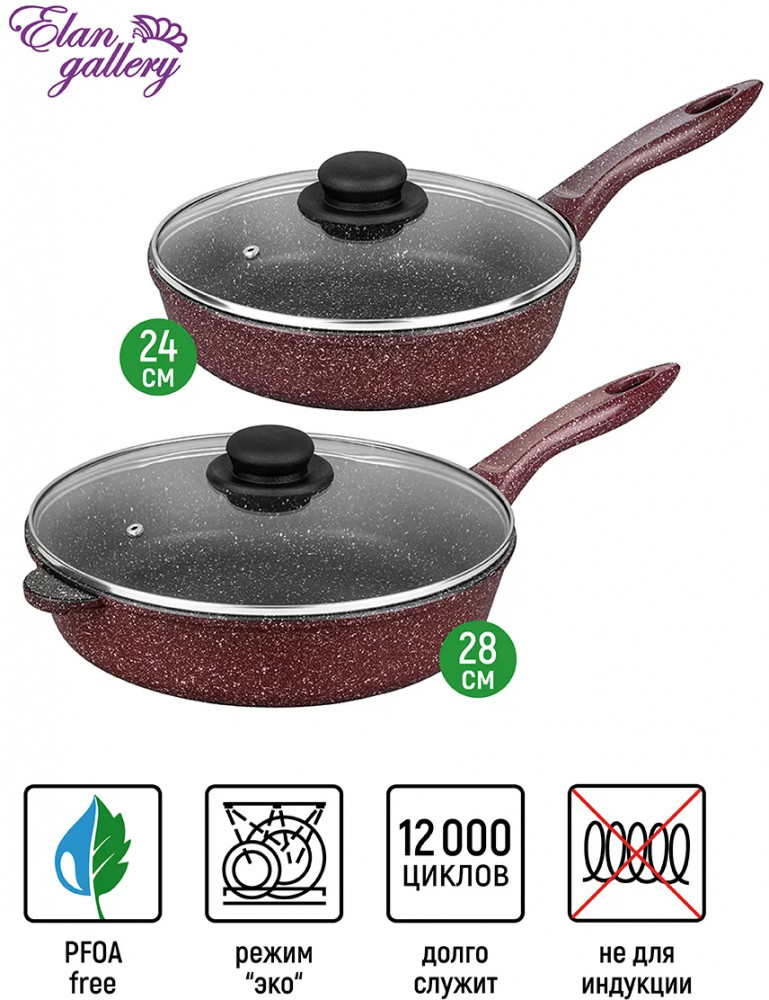 Elan Gallery Набор сковород с крышками «Рубиновый дуэт»