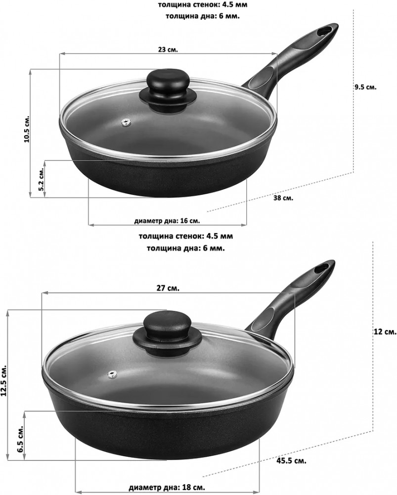 Elan Gallery Набор сковород с крышками «Чёрный оникс»