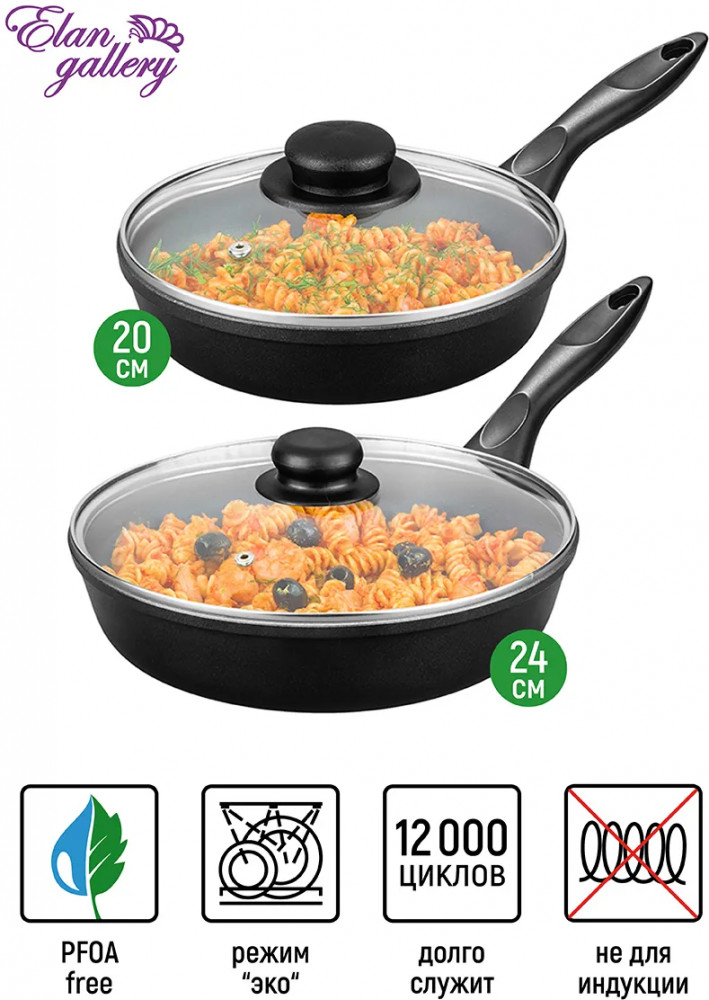 Elan Gallery Набор сковород с крышками «Чёрный оникс»