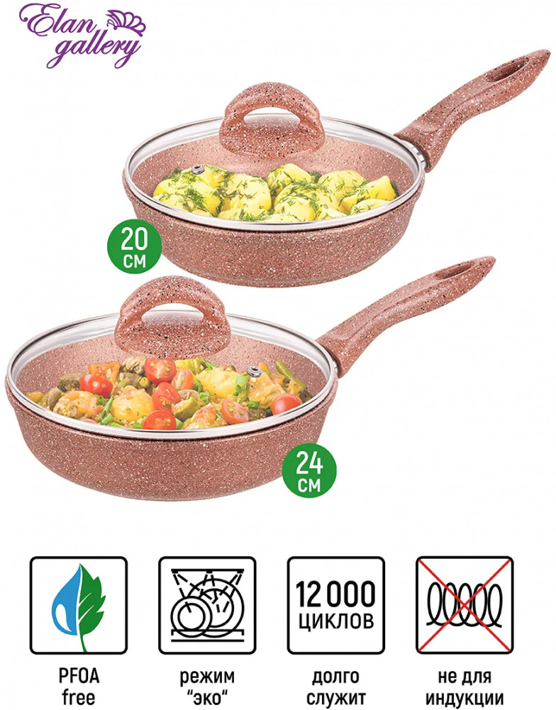 Elan Gallery Набор сковород с крышками «Бронза»