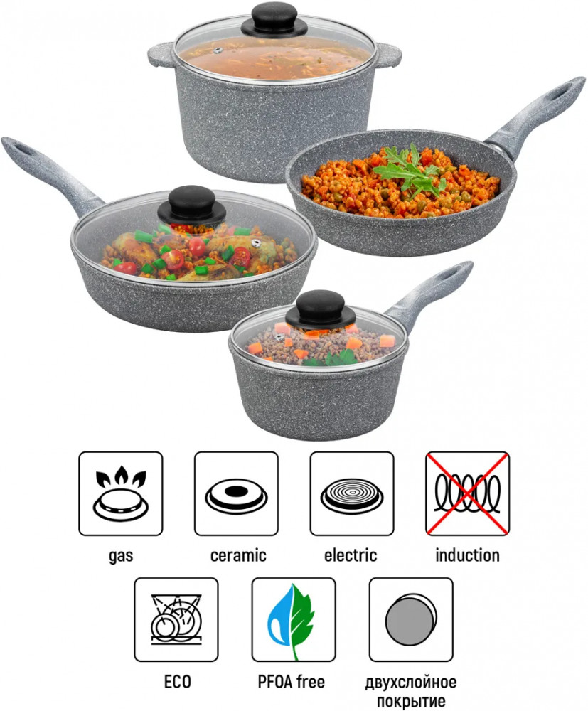Elan Gallery Набор посуды «Серый мрамор»