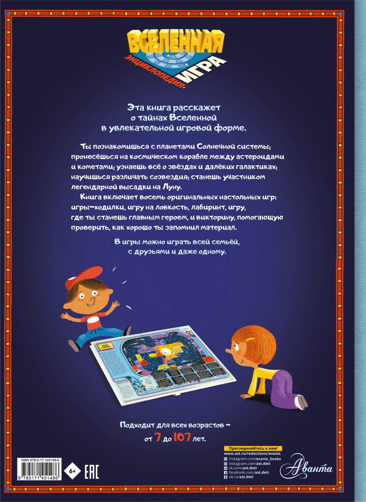 💳 Оплатить за товар можно при получении 🇰🇿 Есть бесплатная доставка по Казахстану от 1 дня 🎁 Копите бонусы с каждой покупки Серия: Энциклопедия-игра Эта книга расскажет о Вселенной в увлекательной игровой форме. Внутри восемь оригинальных настольных игр: игры-ходилки, игра на ловкость, лабиринт, игра, где ты станешь главным героем, и викторина, Ты познакомишься планетами Солнечной системы, кометами, звёздами, метеорами, вместе с марсоходами сможешь побывать на Марсе, совершить высадку на Луне и поучаствовать в космических гонках.8 игровых полей, фишки и кубик в одной книге! Удобно носить с собой. Можно играть всей семьёй, с друзьями и даже одному. |