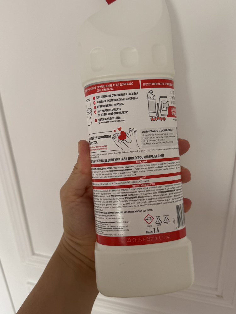 Это не привычный густой Domestos, это жидкий ДОМЕСТОС, хотя на упаковке указано другое. Больше заказывать не буду.