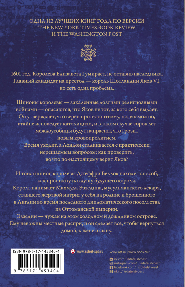 💳 Оплатить за товар можно при получении 🇰🇿 Есть бесплатная доставка по Казахстану от 1 дня 🎁 Копите бонусы с каждой покупки Серия: Big History 1601 год. Королева Елизавета I умирает, не оставив наследника. Главный кандидат на престол — король Шотландии Яков VI, но есть одна проблема. Шпионы королевы — закаленные долгими религиозными войнами — опасаются, что Яков не тот, за кого себя выдает. Он утверждает, что верен протестантизму, но, возможно, втайне исповедует католицизм, и в таком случае сорок лет страданий будут напрасны, что грозит новым кровопролитием. |