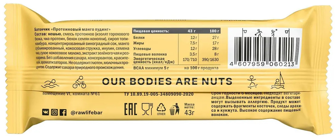 R.A.W. Life Батончик протеиновый «Манго пудинг»