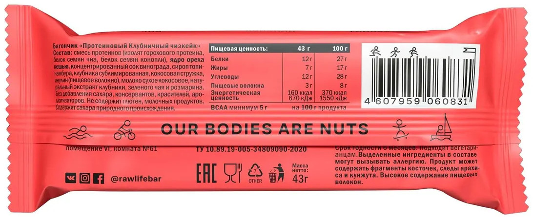 R.A.W. Life Батончик протеиновый «Клубничный чизкейк»