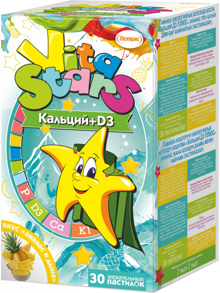 VitaStars Комплекс мультивитаминов со вкусом ананаса и дыни «Кальций+D3»