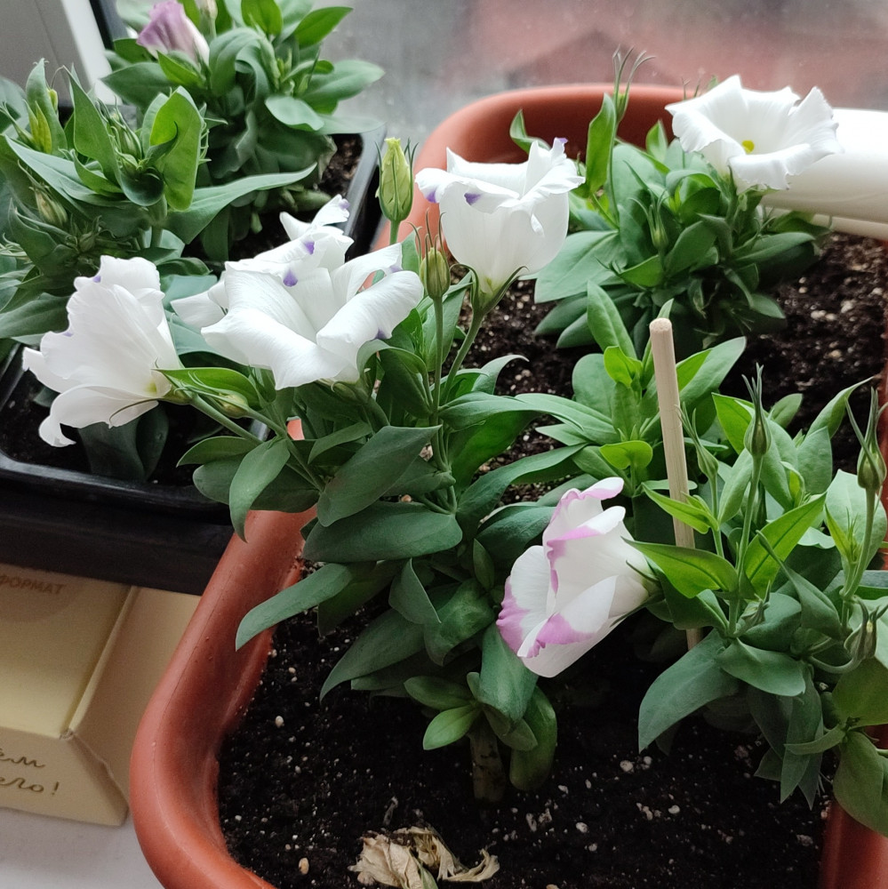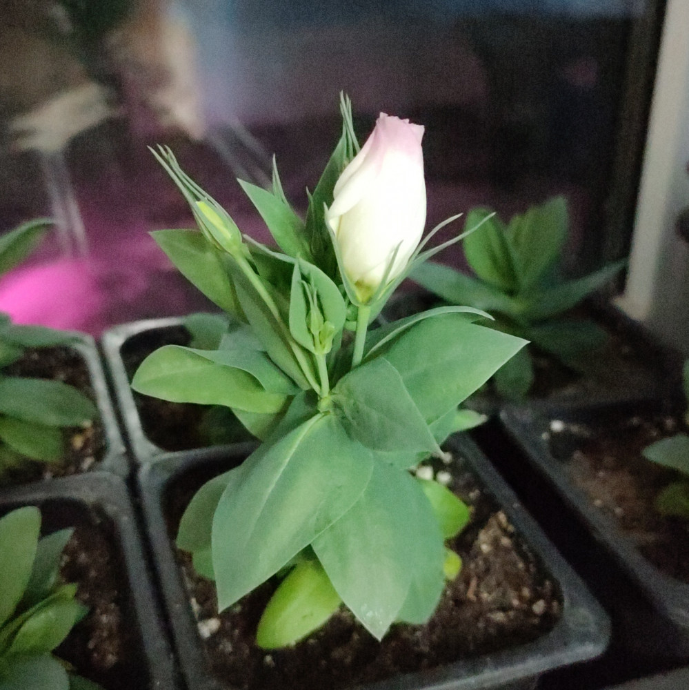миниатюрная, как раз для дома, зацвела первой из всех посаженных 7 гибридов эустом