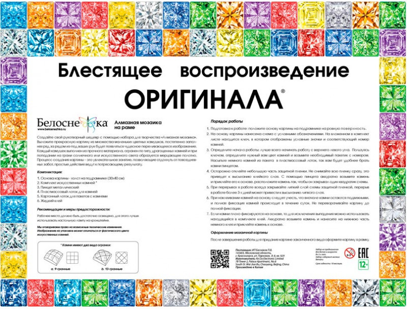 💳 Оплатить за товар можно при получении 🇰🇿 Есть бесплатная доставка по Казахстану от 1 дня 🎁 Копите бонусы с каждой покупки Алмазная мозаика наполнит ваши свободные часы увлекательным занятием. Перед вами прекрасный набор из серии Алмазная мозаика от торговой марки «Белоснежка». |