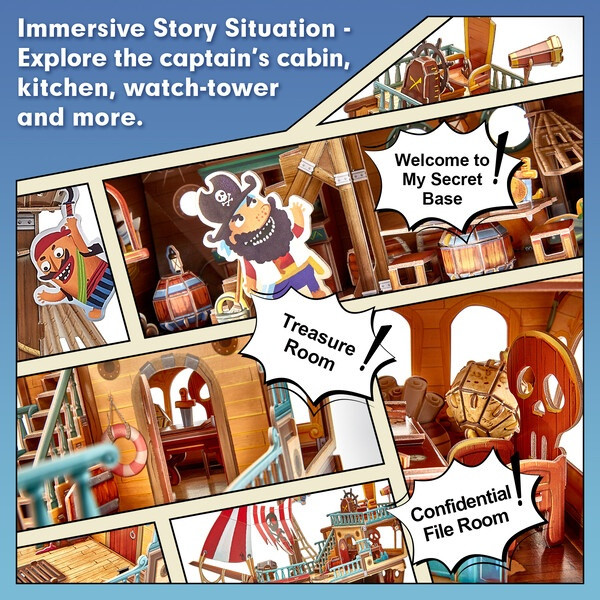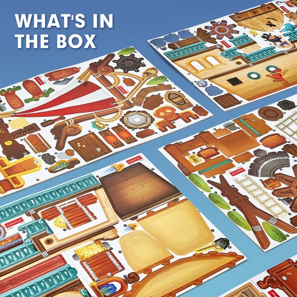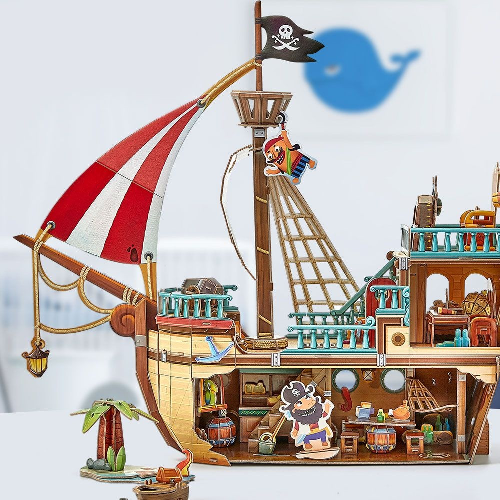 Пиратский корабль с сокровищами — последняя из серии детских 3D-пазлов. Благодаря большому количеству элементов она будет отличной забавой для детей чуть постарше, которые любят пиратов и их удивительные морские приключения.