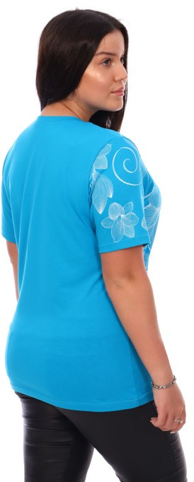Бирюзовая футболка отличается по цвету от фото. Ближе к зеленому. Нет голубого оттенка. Маломерка, заказала 56р на свой 52. Чуть больше чем надо получилась, но не критично.