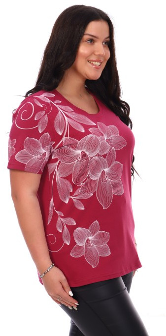 Бирюзовая футболка отличается по цвету от фото. Ближе к зеленому. Нет голубого оттенка. Маломерка, заказала 56р на свой 52. Чуть больше чем надо получилась, но не критично.