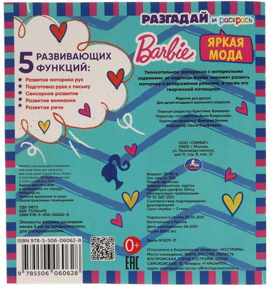 Раскраска «Барби. Яркая мода» станет прекрасным подарком для поклонниц очаровательной Барби: