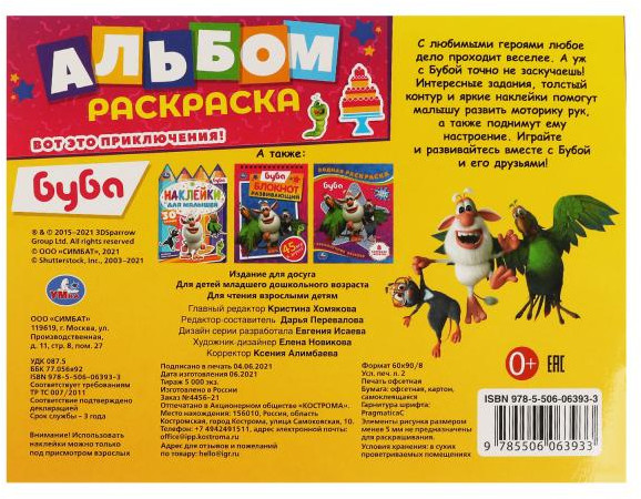 УМка Альбом-раскраска с наклейками для малышей «Буба. Вот это приключения!»-35% +8