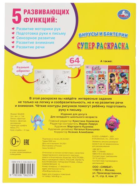 💳 Оплатить за товар можно при получении 🇰🇿 Есть бесплатная доставка по Казахстану от 1 дня 🎁 Копите бонусы с каждой покупки Серия: Супер-раскраска Супер-раскраска «Вирусы и бактерии» станет прекрасным подарком для маленькой художницы: |