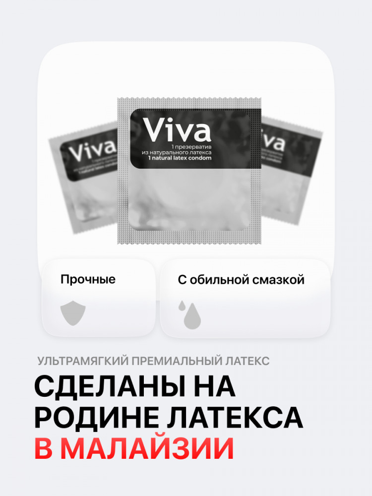 | Презервативы Viva — это одна из наиболее популярных марок презервативов в Европе. Их превосходное качество достигается за счёт передовых немецких технологий и обеспечивает исключительную чувствительность. |