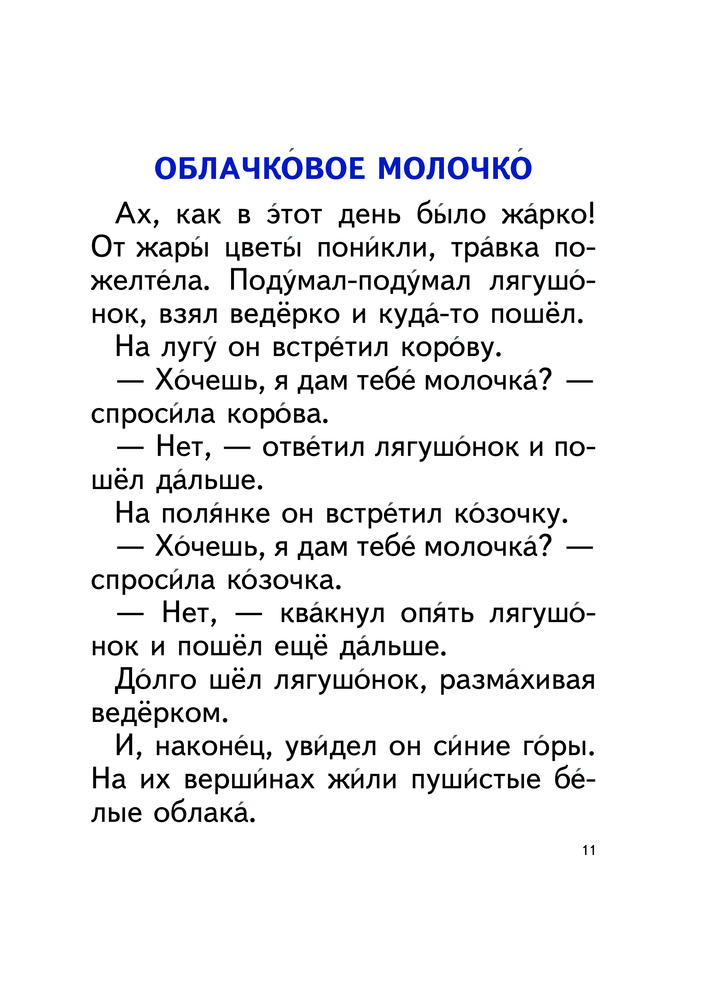 Замечательная книга для деток, только научившихся читать. Шрифт ооочень крупный, проставлены ударения. Качество книги отличное - крепкий переплет, очень плотные белые листы, книгу приятно держать в руках. Ребенку очень нравится. Спасибо!