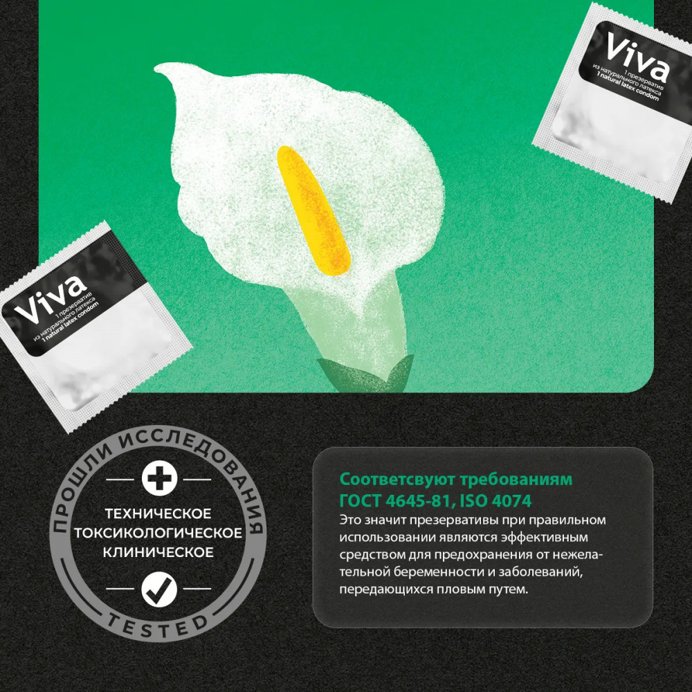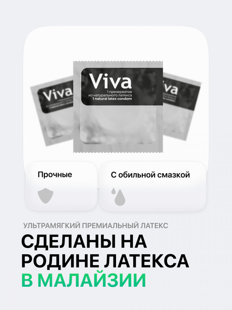 | Презервативы Viva — это одна из наиболее популярных марок презервативов в Европе. Их превосходное качество достигается за счёт передовых немецких технологий и обеспечивает исключительную чувствительность. |