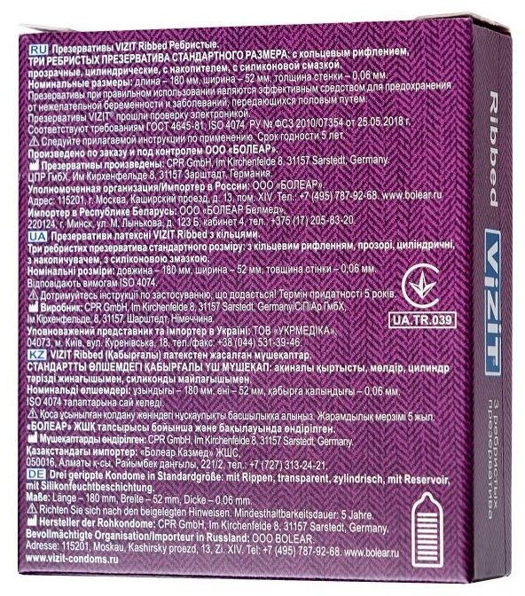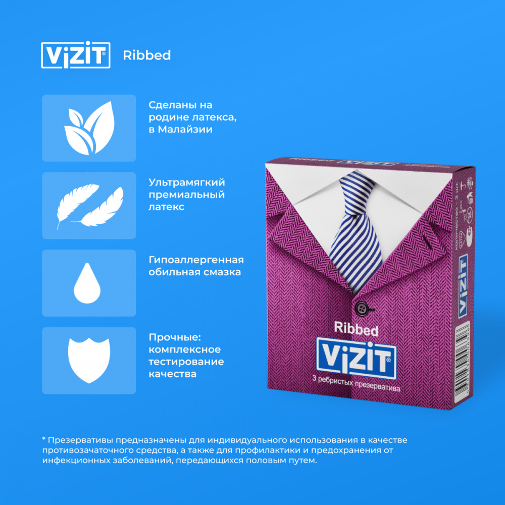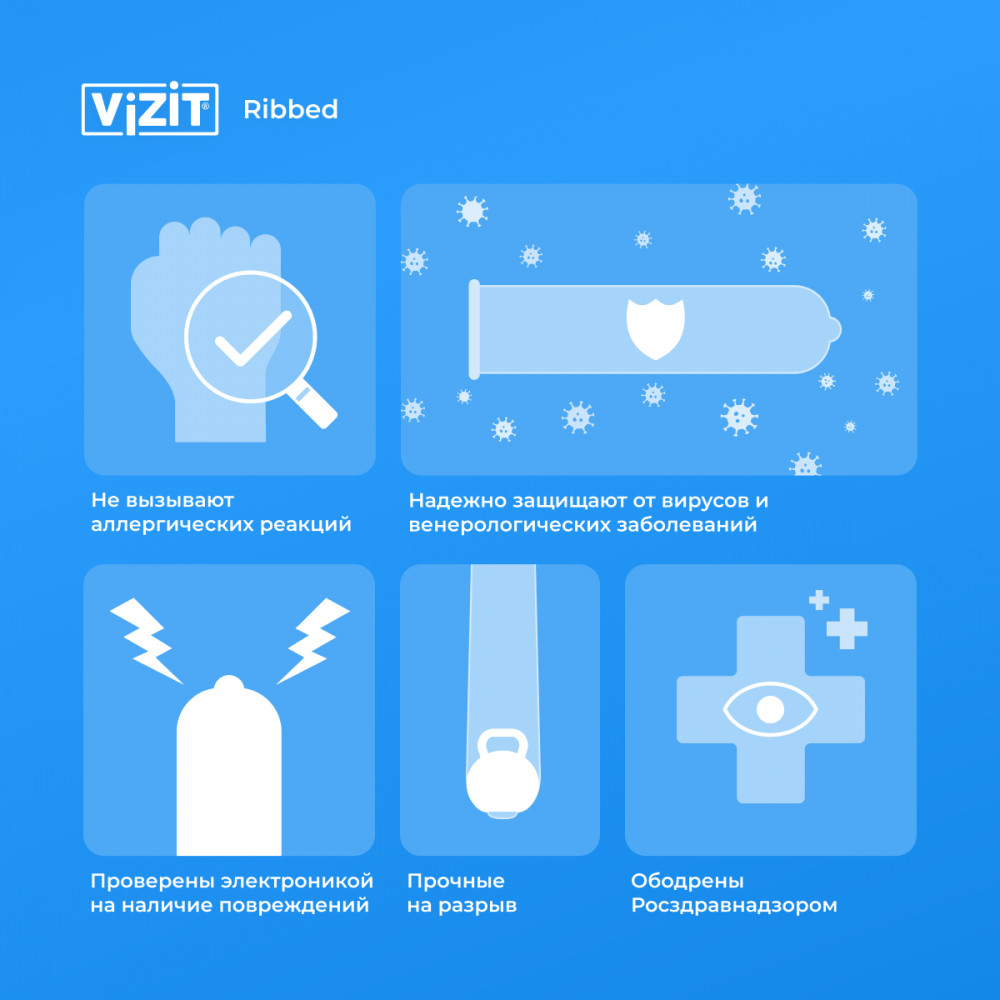 Презервативы ребристые это интимные товары для взрослых из тончайшего натурального латекса с обильной смазкой. Каждый презерватив обеспечивает максимальную чувствительность, высокий уровень комфорта и безопасности во время секса. Эти товары 18+ идеальный выбор для тех, кто хочет сохранить естественность ощущений и удобство во время интимной близости. Наши ультратонкие презервативы не спадают и не передавливают, легко надеваются и сохраняют всю полноту ощущений при половом акте. Ребристые с кольцевым рифлением презервативы VIZIT Ribbed изготавливаются только из премиального латекса, они отлично растягиваются, не рвутся и надежно защищают от нежелательной беременности и инфекционных заболеваний, передающихся половым путем. Инновационные технологии производства позволяют создавать контрацептивы из ультратонкого и мягкого латекса, обладающего при этом высоким уровнем прочности и надежности. Товары 18 +, представленные в нашем магазине, подходят для всех видов секса, а также совместимы с секс-игрушками и другими интимными товарами, представленными в секс шопах. Наши презервативы и лубриканты являются оригинальным брендом, напрямую поставляемым от производителя. Они имеют все необходимые регистрационные удостоверения и сертификаты, соответствуют самым высоким стандартам качества и безопасности и проходят тщательную и многоуровневую проверку для обеспечения лучших свойств.