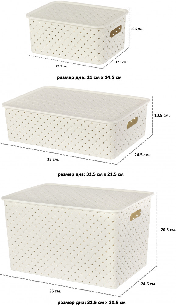 Коробки хорошего качества, но для меня слишком маленькие. Немного не рассчитала с размером. Доля хранения вещей не практичные из-за размера. Больше подойдут в ванну, а так качество очень хорошее - рекомендую.