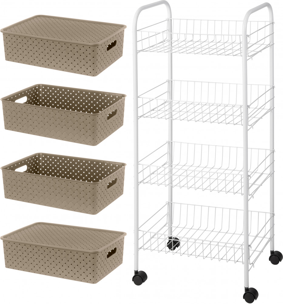 2 корзины с крышкой, 2 корзины без крышки, этажерка