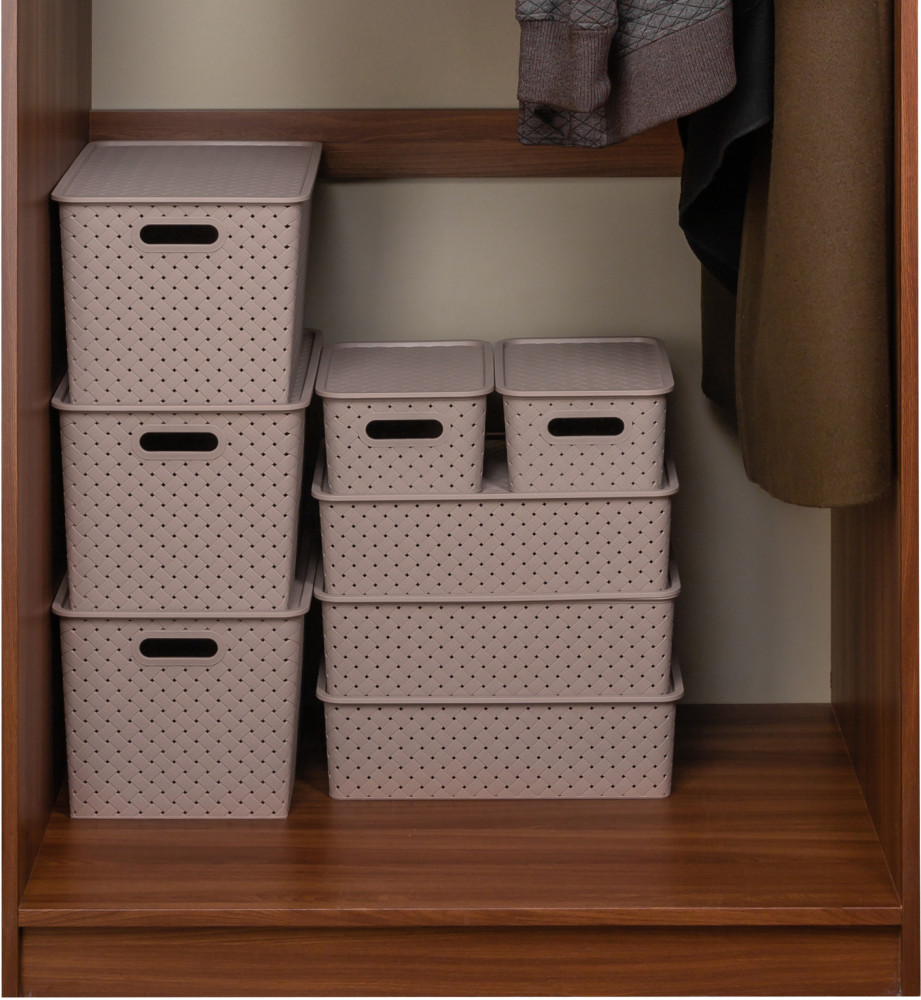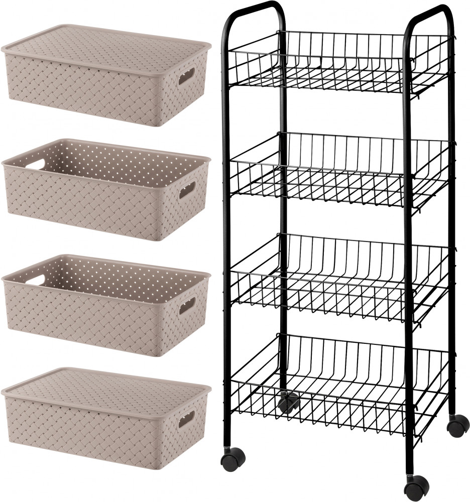 2 корзины с крышкой, 2 корзины без крышки, этажерка