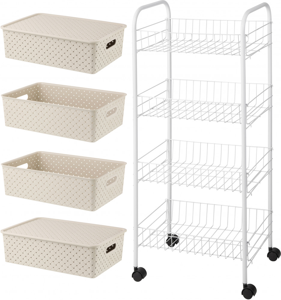 2 корзины с крышкой, 2 корзины без крышки, этажерка