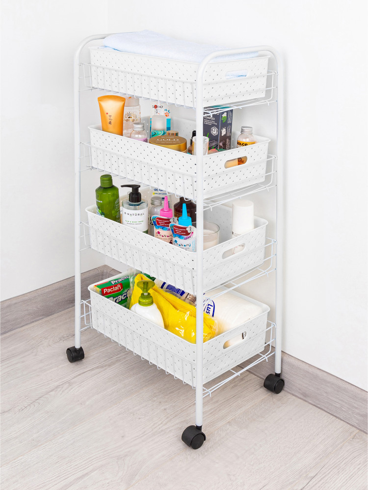 Хорошая этажерка. Не дочитала инструкцию по сборке до конца, не сразу поняла как же закрепить проволочные корзины чтобы вся конструкция не распалась. Зато потом этажерка оказалась очень удобной. Единственный минус - колёсики просто вставляются в боковые стойки и всё. То есть этажерку можно только передвигать, приподнять нельзя - сразу колёсики выпадают. Но в целом очень удобная и вместительная.