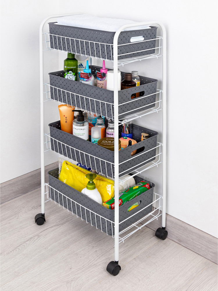 Хорошая этажерка. Не дочитала инструкцию по сборке до конца, не сразу поняла как же закрепить проволочные корзины чтобы вся конструкция не распалась. Зато потом этажерка оказалась очень удобной. Единственный минус - колёсики просто вставляются в боковые стойки и всё. То есть этажерку можно только передвигать, приподнять нельзя - сразу колёсики выпадают. Но в целом очень удобная и вместительная.