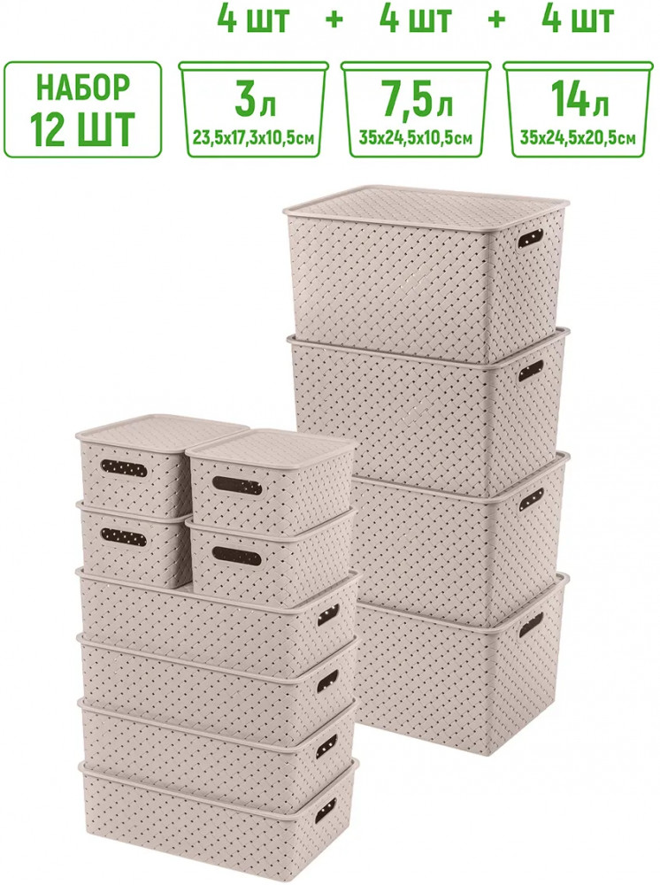 хороший набор, корзинки разных размеров, очень удобные для хранения мелочей в большом шкафу.