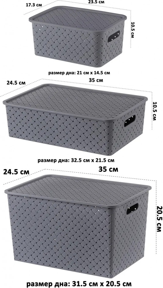 хороший набор, корзинки разных размеров, очень удобные для хранения мелочей в большом шкафу.