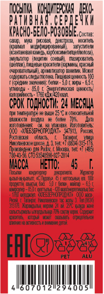 Отзывы «Посыпка «Сердечки красно-бело-розовые»»