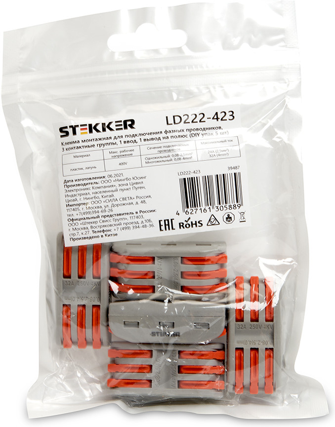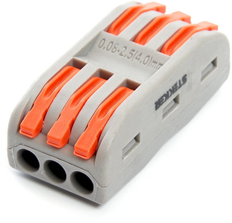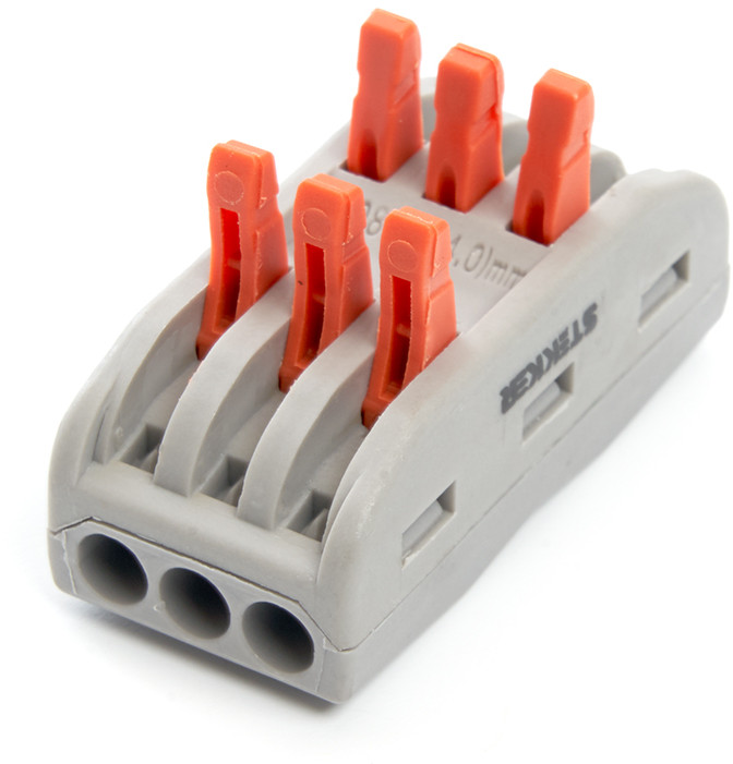 Stekker Клемма монтажная для фазных проводников LD222-423В данный момент этот товар отсутствует в продаже. Возможно, у нас найдется аналогичный или похожий товар здесь. Клемма пружинная универсальная «Stekker», 6-проводная 0,08-2,5/4 мм2, 400В, 24A, без пасты, материал изделия нейлон 6.6, латунь, сталь. Тип провода одножильный/многожильный, материал провода медь, температура окружающей среды −20...+40°C. |