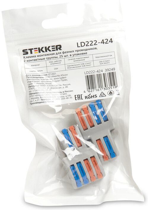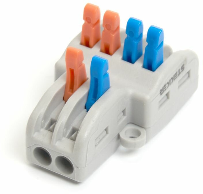 Stekker Клемма монтажная для фазных проводников LD222-424В данный момент этот товар отсутствует в продаже. Возможно, у нас найдется аналогичный или похожий товар здесь. Клемма пружинная универсальная «Stekker» LD222-424, 6-проводная 0,08-2,5/4 мм2, 400В, 24A, без пасты, материал изделия нейлон6.6, латунь, сталь. Тип провода одножильный/многожильный, материал провода медь, температура окружающей среды −20...+40°C. |