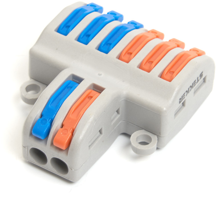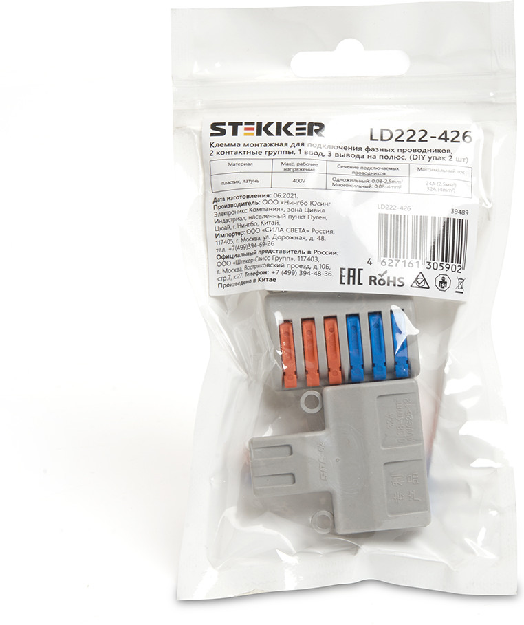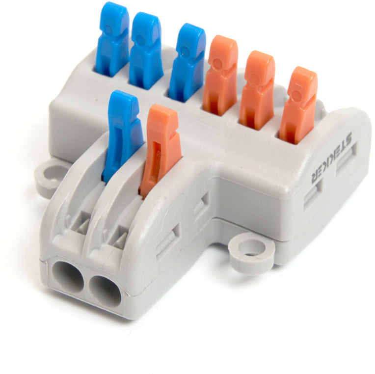 Stekker Клемма монтажная для фазных проводников LD222-426В данный момент этот товар отсутствует в продаже. Возможно, у нас найдется аналогичный или похожий товар здесь. Клемма пружинная универсальная «Stekker» LD222-426, 8-проводная 0,08-2,5/4 мм2, 400В, 24A, без пасты, материал изделия нейлон 6.6, латунь, сталь. Тип провода одножильный/многожильный, материал провода медь, температура окружающей среды −20...+40°C. |