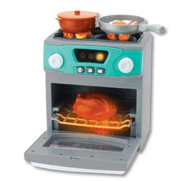 Keenway Плита (звук, свет)В данный момент этот товар отсутствует в продаже. Возможно, у нас найдется аналогичный или похожий товар здесь. В набор входит газовая плита, курица, кастрюля, сковорода с разбитым на нее яйцом и кусочком бекона. Плита имеет две конфорки и духовочный шкаф. Так же она снабжена дисплеем, на котором отражаются все блюда, готовящиеся в духовке и тремя кнопками для приготовления этих блюд. Для того чтобы включить конфорки поверните регулятор над нужной вам конфоркой и вы услышите как зажегся огонь и готовится еда. При включении конфорок или духовочного шкафа в соответствующем месте загорится красный свет, имитирующий огонь. |