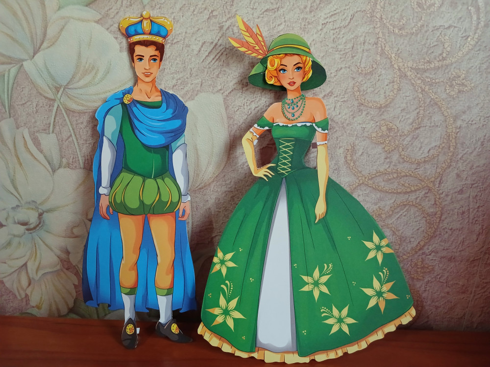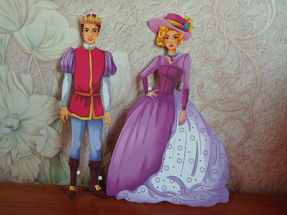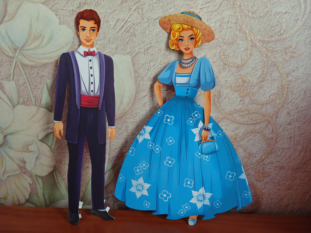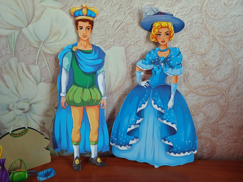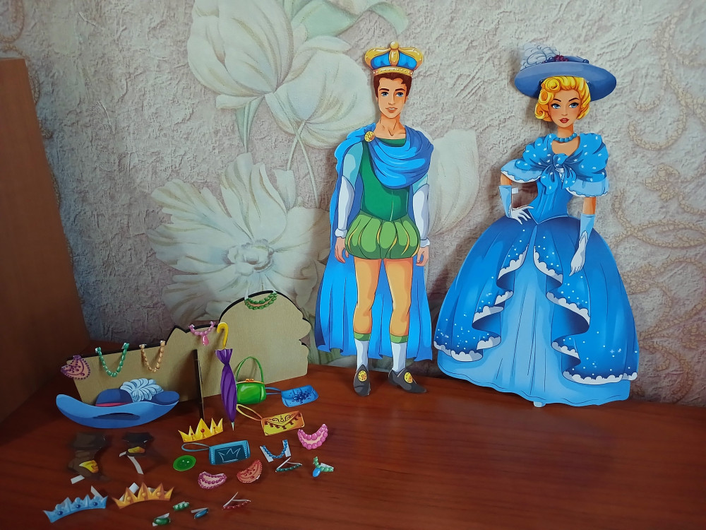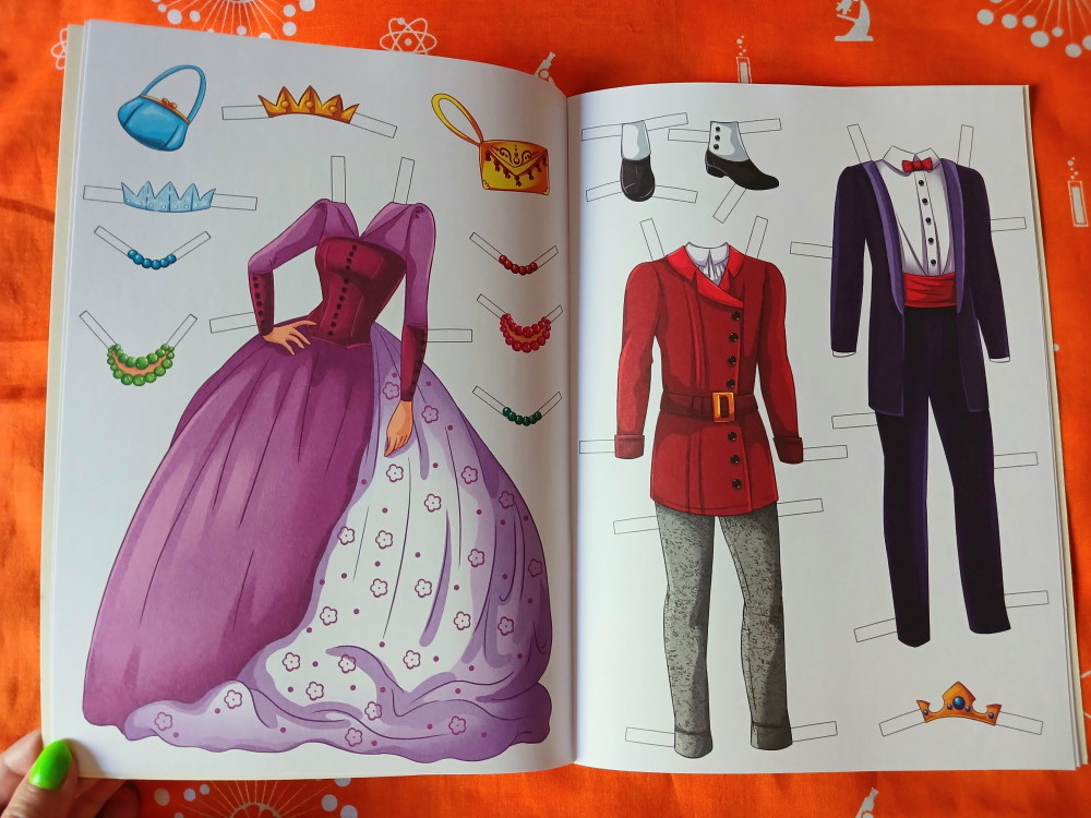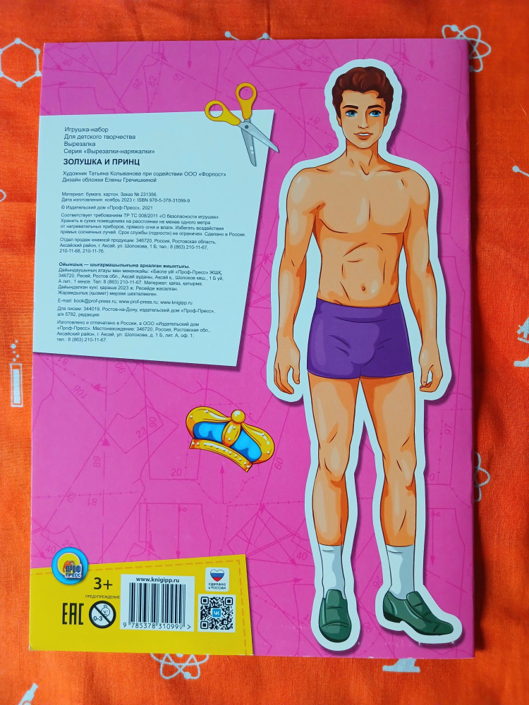 "Золушка и принц" 👸❤🤴 Игрушка-набор для детского творчества Серия "Вырезалки-наряжалки" Художник Татьяна Колыванова при содействии ООО "Форпост" Издательский дом "Проф-Пресс" Дата изготовления: ноябрь, 2023-й год. Красивые куколки и красивые наряды по мотивам сказки Шарля Перро "Золушка". Куколки и наряды стилизованы под разные эпохи, но больше всего похожи на 50-е годы прошлого века. Одежда и аксессуары довольно яркие, интересные, объёмные. Много украшений, корон и сумочек. У Золушки 6 платьев, у Принца 4 костюма. (Всё как в жизни! 😅) Есть также обувь. Сами куколки достаточно высокие, но не крупные. Картон тонкий, клеила ещё на один картон этой же книги. Листы тоже тонковатые, но сойдут. Куклы мне понравились, советую к покупке. 😃