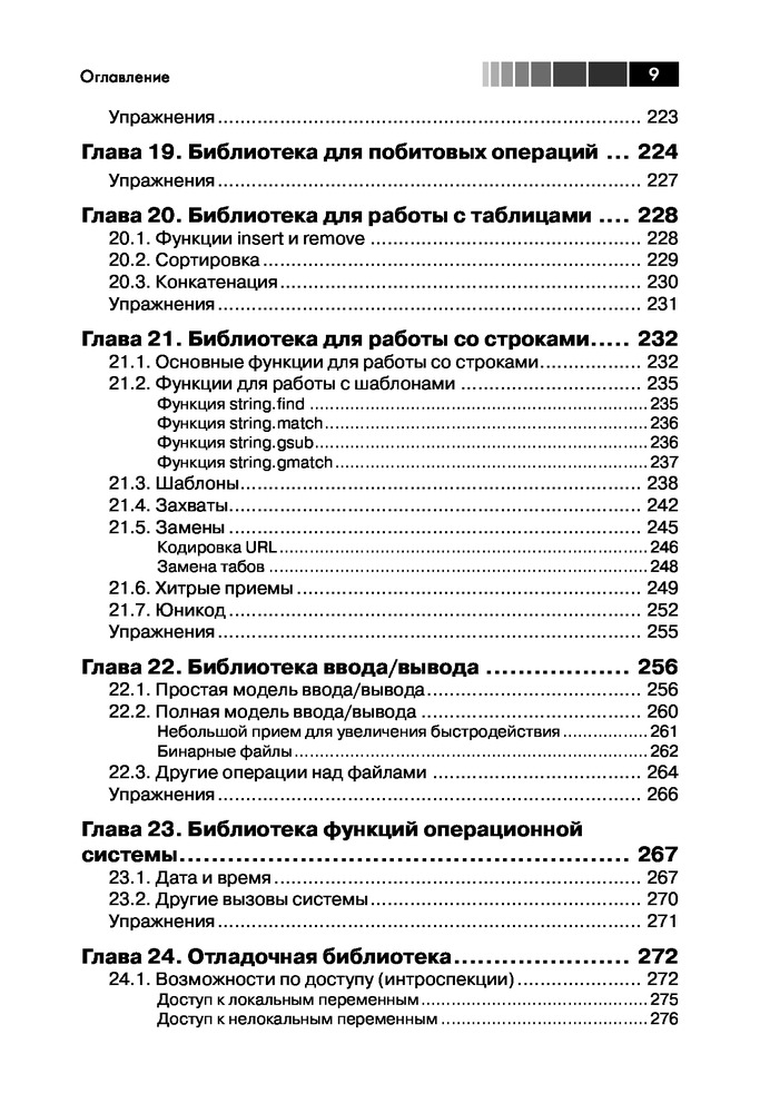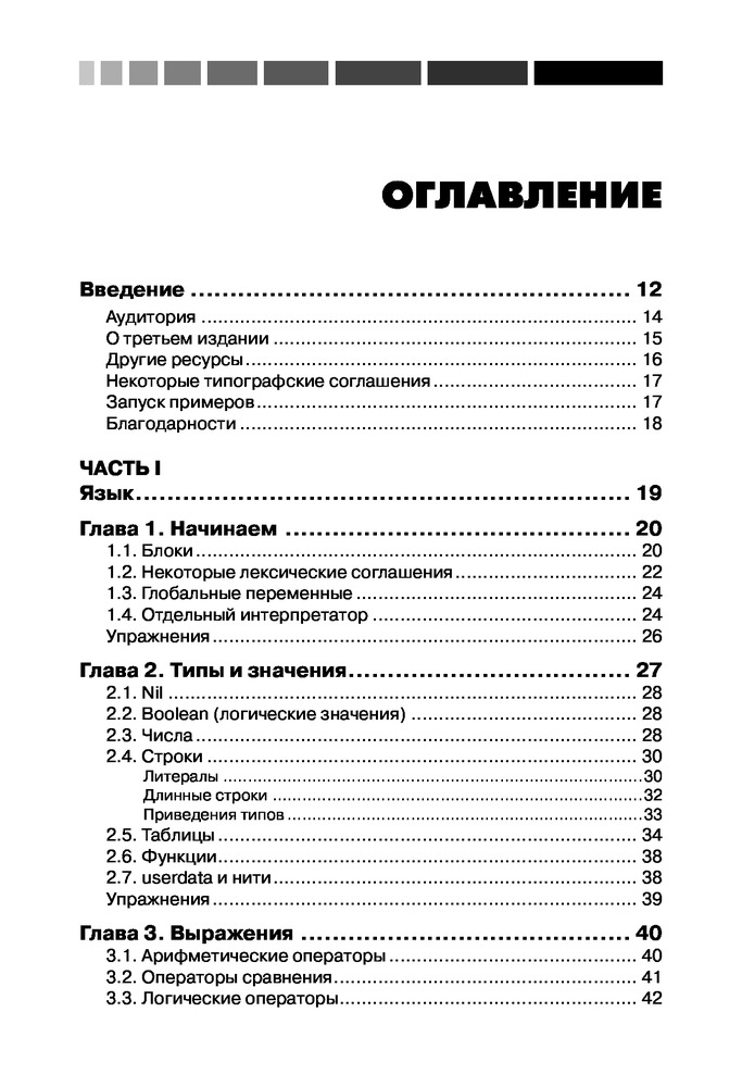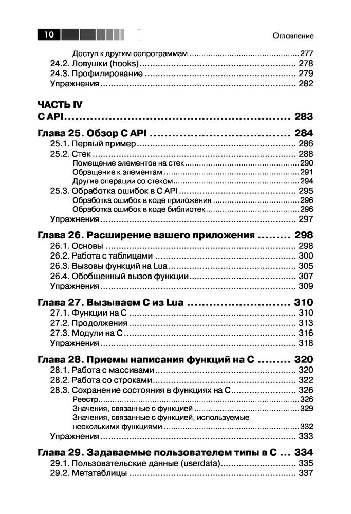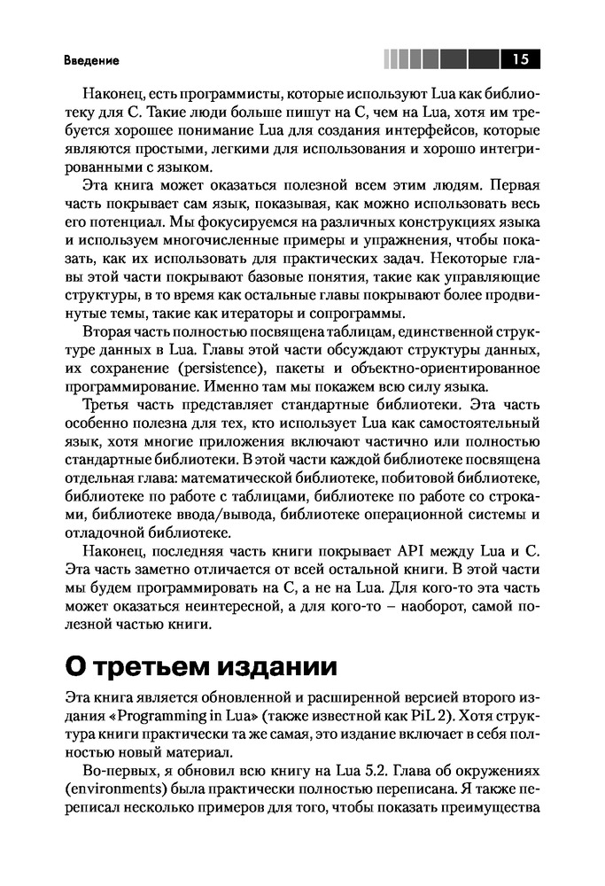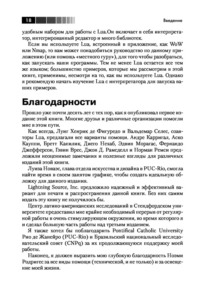 Книга посвящена одному из самых популярных встраиваемых языков — Lua. Этот язык использовался во многих играх и большом количестве различных приложений. Язык сочетает небольшой объем занимаемый памяти, высокое быстродействие, простоту использования и большую гибкость. Книга рассматривает практически все аспекты использования Lua, начиная с основ языка и заканчивая тонкостями расширения языка и взаимодействия с С. |