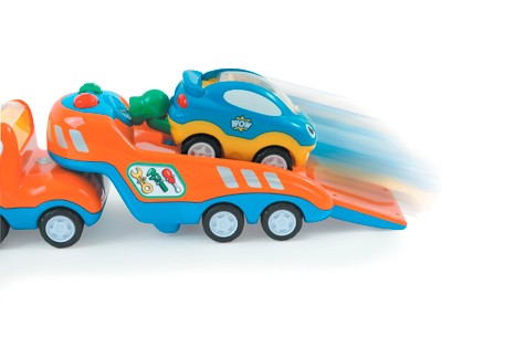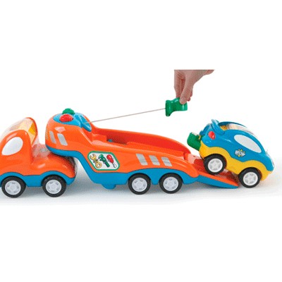 Заказывали эту машинку бабушкам/дедушкам на День Рождения сына. Сынишка в востроге, очень интересная игрушка. На прицеп можно загонять другие машинки из этой серии. Рекомендуем. Сын подолгу играется с машинками и человечками WOW Toys. Стоит отметить, что игрушки сделаны с умом, по-научному так сказать. А именно: очень качественные, форма/цвета/размер идеальны для малышей, человечки выпонены с большим набором рельефных элементов (носик, глазки, одежда) и когда ребенок достает/садит человечка в машинку, а делает он это постоянно :) тренируется мелкая моторика. Если Вы заботитесь о развитии Вашего малыша, очень рекомендую Вам игрушки этой серии.