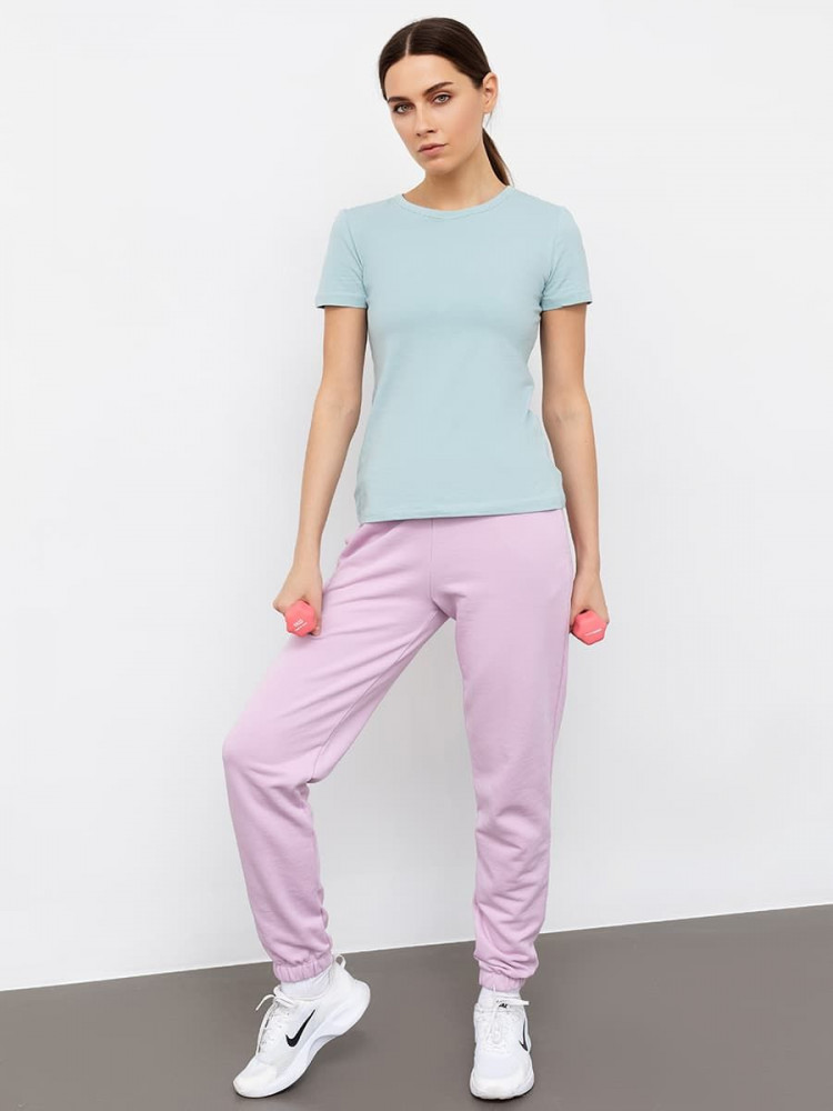 Цвет не такой нежно-розовый, как на фото, скорее бежевый. В целом хорошая футболка на лето, не слишком плотная, но и не тоненькая ткань.